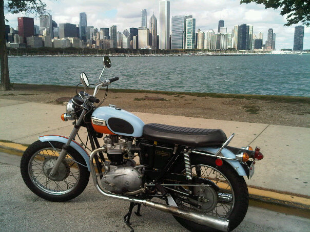This weekend I finally had the opportunity for a couple of jaunts out on the Bonnie to get familiar with its handling and controls as well as getting comfortable with it in traffic. I rode up Sheridan Road yesterday to Lake Forest; nice windy roads through leafy North Shore communities; returning down Route 41 to get the bike up to speed. Today I rode down the length of Lake Shore Drive, again a mix of traffic, speed and city riding. A few adjustments to the front brake cable to tighten it up as well as dialling up the rear shocks gave a more secure feel today. Still need to attend to the front brake cable brake light switch as well as the engines idle and low speed tuning (it’s a little hesitant). However, when you roll on the throttle the bike takes off and I sense why they felt the need for an additional gear in 1973 with the T120V! (V for 5 speed). All in all though a couple of great rides out!