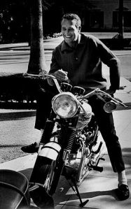 Paul Newman on a mid-sixties Bonnie.