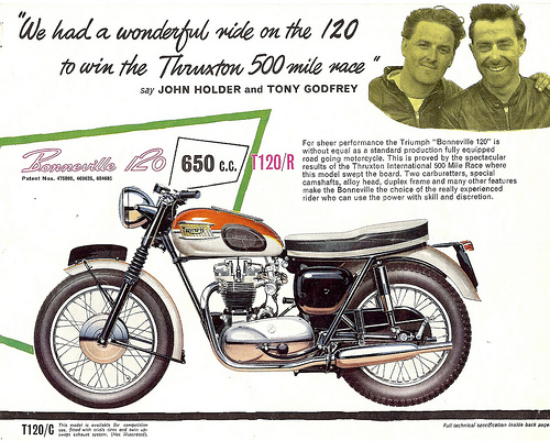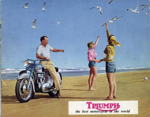 Here’s another selection of the various methods through time to propote the prowess of a Triumph motorcycle…