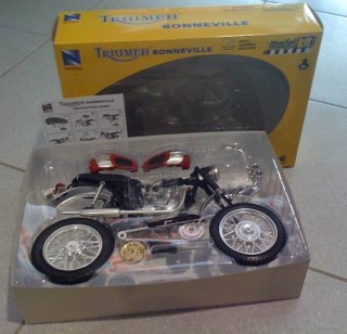 A nicely detailed semi-built kit, just bolt ‘er together and there you are, one Bonneville. Nice detailing too.