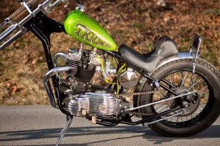 U-shaped bucket seat, peanut tank and raked hardtail frmae; that’s chopper style. The british twins were used as much as the harley v-twins are seen today in these custom specials.