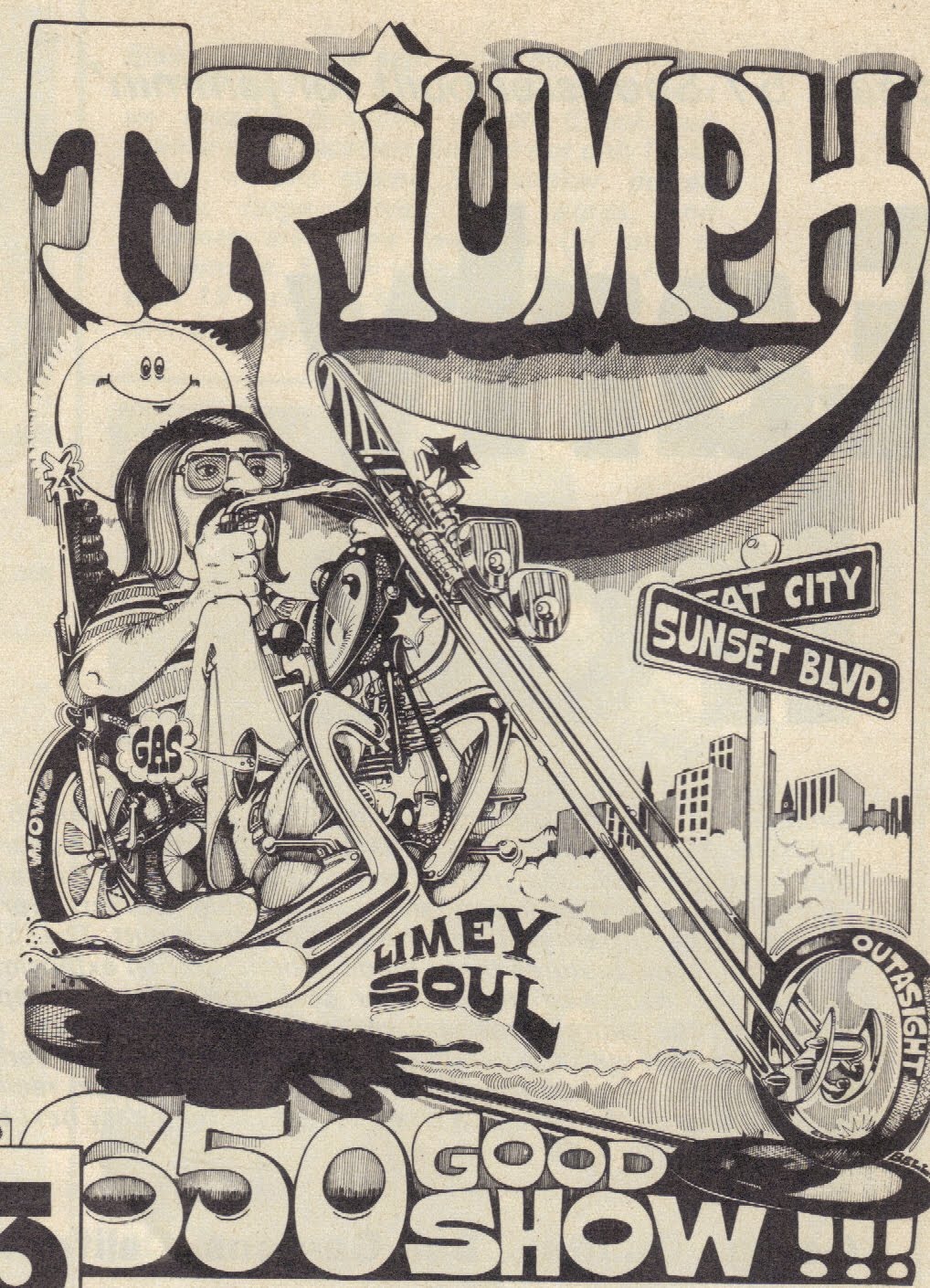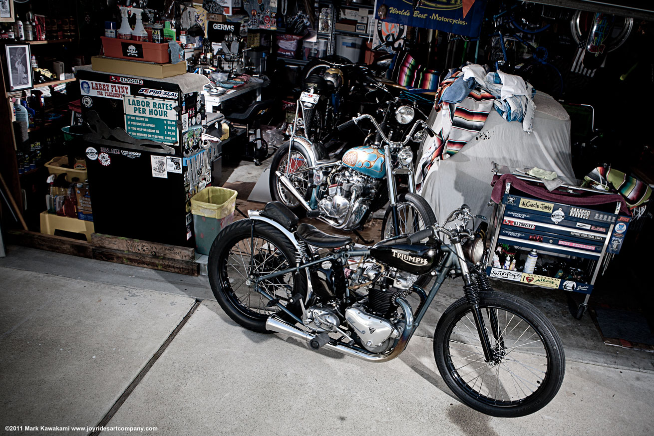 U-shaped bucket seat, peanut tank and raked hardtail frmae; that’s chopper style. The british twins were used as much as the harley v-twins are seen today in these custom specials.