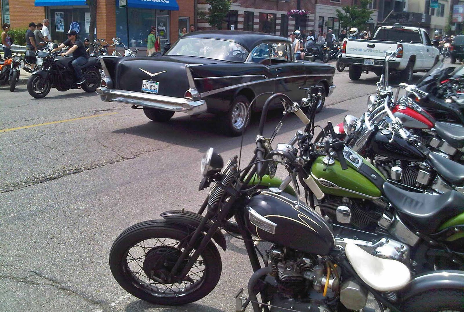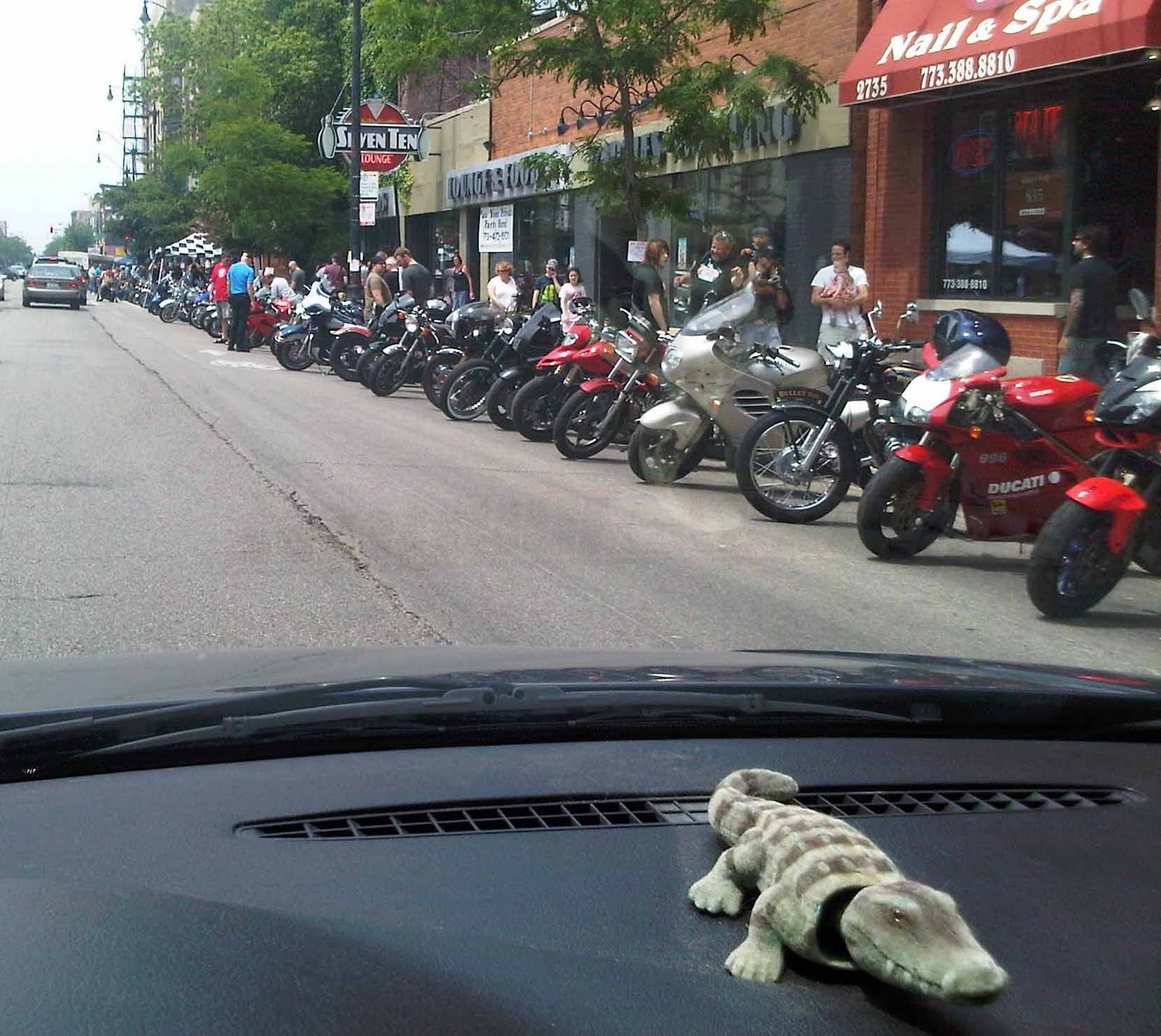 Today on Lincoln Avenue in Chicago, there was a street-wide bike show for all comers. Based at Delilahs Bar, usual hangout for the Chi-Town ‘Mods vs Rockers crew, it drew crowds riding in on, and admiring, numerous makes of bike. From dozens of Triumphs, Cafe Racers, scooters to the more esoteric Italian, practical German, and a few Harleys for good measure. A great range of motos! Had a super time looking along the rows parked on both sides of the street at this wide range of very personal rides. I’ll take a few days of this blog to cover what I saw! Enjoy!