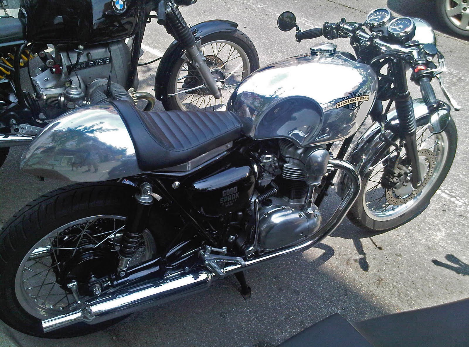 A few cafes from other makes also made appearances at Delilahs: starting off with a sweet Kawasaki W650, the twin based on a 60’s motor; more so than the newer Bonnies. Clubmans, alloy petrol tank, ally rims, rear-sets, bum stop seat: what more could you want?