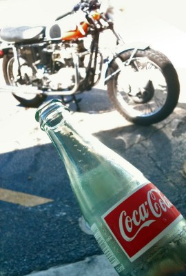 After the refreshing ride on Saturday morning I stopped in at Bobs Deli, a local 7-11 in Highland Park. What was needed was a good cold, classic bottle of “ice cold”. The moto cools in the background, I cool in the shadows.