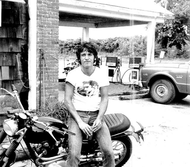 You’d think he’d be cruisin’ around on a Harley or Indian; but no, The Boss, aka Bruce Springsteen, has Triumph as his selected ride. Good Choice! Here on what looks like a late 60’s TR6C Trophy. High pipes, small headlight, no tach and single carb give that away. That was then, this is now… the passion still burns!