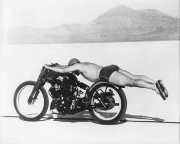 The singer Pink loves her Triumph Bonneville; seen frequently haring around the LA boulevards duckin & diving from paparazzi. Alecia Beth Moore, as she is also known as, takes the biker look somewhat seriously; engineer boots, open-face with nannini goggles; though a nice leather jacket and at least a pair of gloves is recommended!
