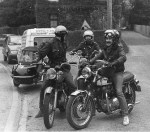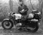 A few choice images of Triumphs in various guises: be it travelling with your mates, racing or touring. Whatever the scene smiles abound! The mud covered, big tanked and laden moto is a classic shot of a true motorcyclist!