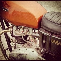 A Swap Meet at Woodstock IL today allowed a plethora of vintage bikes, parts, and ‘cyclists to be regarded. I’ll spend the next few days going over the finds I saw: obviously some British Iron was represented, as was a LOT of Harley Davidson, but a few 70’s Japanese gems was seen too. Starting today with some of the Triumph findings…