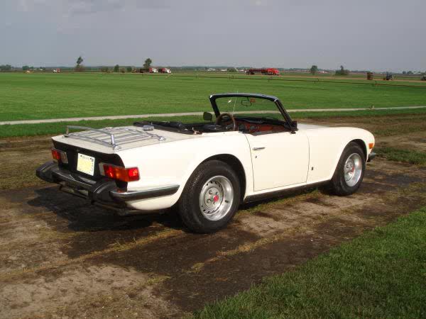 …when those four are on the corners of a smasher of a sports car from the seventies. In this case the unparalleled Triumph TR6 the young sibling of earlier raceworthy greats like the TR2 or alternative cousin to the sweetlined, albeit underpowered, Spitfire. The inline 2.5l six gave oomph enough for a spirited drive around the countryside. The proportion of the square jawed body with large wheels designed by the German Karmann house gave this sportster a fresh and desirable look for any respectable driving glove-clad, tweed cap wearing ‘autophile’. Indeed the sparse dashboard provides the road-pilots cockpit; backed with wood and instrumented by Smiths.