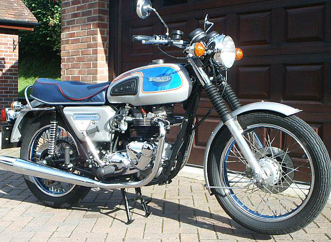 HRH Queenie Betty has been the Monarch of Blighty for three score years now; and to celebrate this momentous occasion all the citizenry of The Isles have a four, yes read that as a 4, day bank holiday weekend…. Well, it seems appropriate to recall a limited edition Triumph from 1977, Lizzies Silver Jubilee. The T140J 750cc Bonneville. Only 1,000 were made of this silver, blue and red pinstriped special. A royal blue saddle with red piping surely a throne for royal riders all.