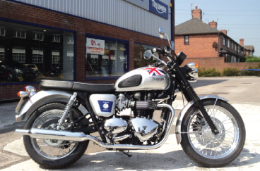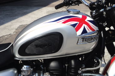 Carbonized Twin: A Triumph dealer in Staffordshire has created a Diamond Jubilee special for this year… Silver-white tank with swooshing Union Flag motifs and a side panel marker depicting the commemoration.