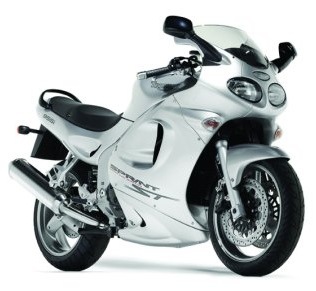 One of the mid-range models of Hinckley Triumphs in the early 2000’s was the Sprint. A doughty do-it-all Moto equipped for quick speedy jaunts (hence the name I suppose) as well as day long mile munching on windy back roads or fast autobahn. It’s 955cc triple engine, as in the Daytona and Tiger models, is tuned to serve these needs comfortably yet with scoops of fun. As well as the Triumph yellow and classic racing green the Sprint was available in Red, White & Blue (I had to throw in a Union Flag reference in there somehow to round off the Jubilee celebrations!)