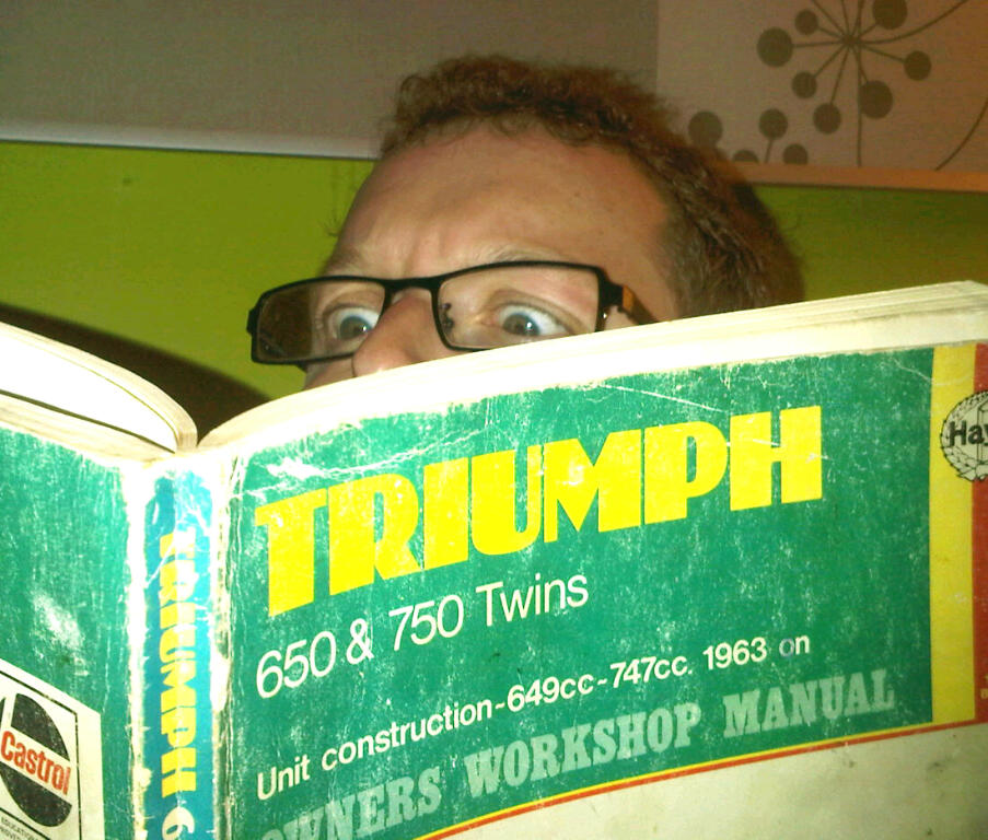 I’m currently poring over the great Haynes Workshop tome for the Bonnie, spending most of the time in the electrical section. It’s near illuminated script like writing gives step by step guiding in all things mechanical and an attempt of thing electrical. Along with the Meriden published Owners Workshop and Parts Manual is absolutely essential for any Trumpet tinkerer or hair puller…