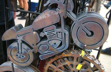 Plate steel CNC cut into a Triumph graphic. (Computer Numerical Control)