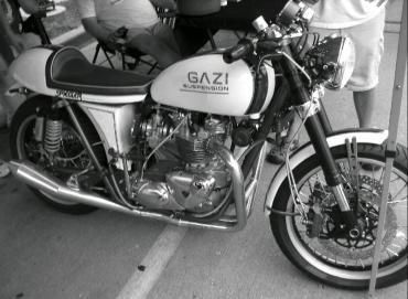 Harry Harrison wrote some great stories about the lighter side of galactic adventure. My favourite was the escapades of James Bolivar diGriz, Slippery Jim. Con man, thief, Corps antagonizer and darn good ducker and diver. HH passed today (87). I’ve chosen this Triumph special: it is a damn good ‘sorted’ machine worthy of a RAT! Big forks, brakes, air cooled and, I’m sure, hot cammed engine. My Bonnie dreams of bikes like this…