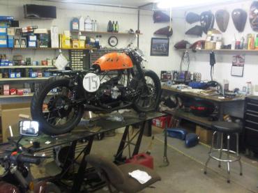Paynesville Minnesota. Zap Leather & Cycle: A rural motorcycle shop with leatherwear frontage and restoration/repair workshop behind. The owners Chuck and Tiff Koshiol gave me, my father-in-law Warren, and brother-in-law Dan their ‘nickel tour’ of the outfit. The front window display was a fifties Indian, and not your usual v-twin Springfield MA moto but actually a rebadged Royal Enfield. A taste of things to come. The back ‘shop was a great space for all aspects of two-wheeled work. On the stands was a cafe’d BMW airhead, another aforementioned Indian, a neat little flathead single of misty origin and a terrific Norton being ‘sorted’ for some lucky customer. Nice details to ensure everyday smooth running was assured. Eye Candy? Like Swiss chocolate!