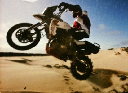 The latest Icon Moto apparel catalogue came through the mail slot today. All nice stuff. But what caught my eye was this ‘prop’ bike: a Well Sorted Tiger 800. The new dual purpose machine from those blokes at Hinkley. This has been given a tasty colour scheme which must cover all sorts of exciting engine fanagling. That paddle back tire will make sand hauling a little easier. However you still have to pin the throttle on the big dunes and hope the front end doesn’t bury itself down. S.McQ. Would be on one of these for sure.