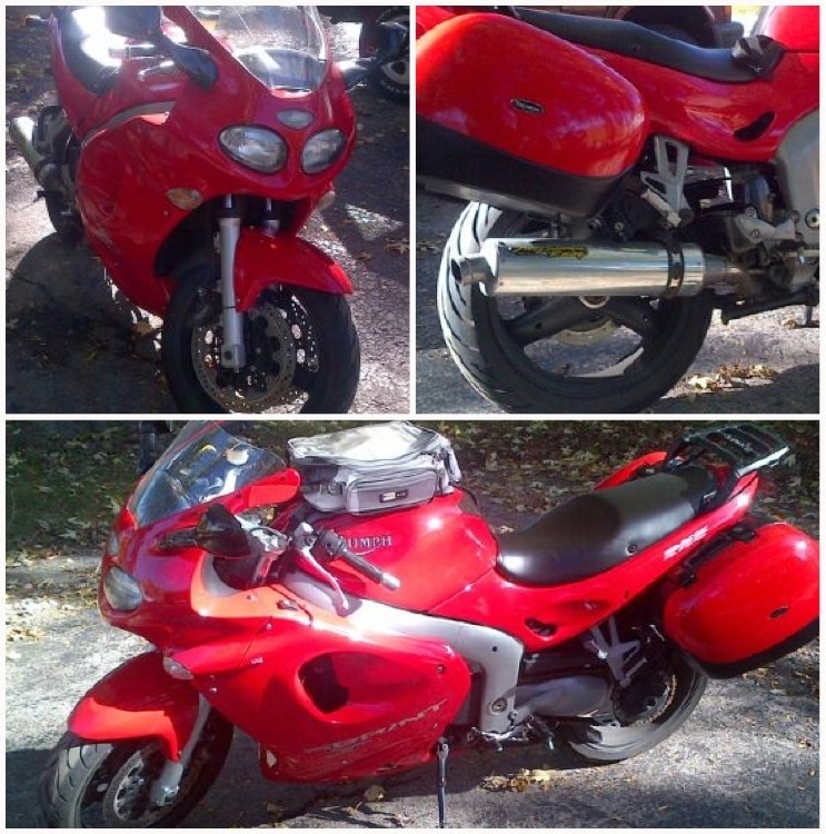 Red Rocket…… The Triumph Sprint is a bike built on the 955cc sports triple motor but with a wee slant on comfort. Pack yer bags and take to the open road, whether blasting the ‘superslab’ or high-speed curvy lanes. Pop off the bags and take to the twisties; let the country airs flow through your cardinal feathers.