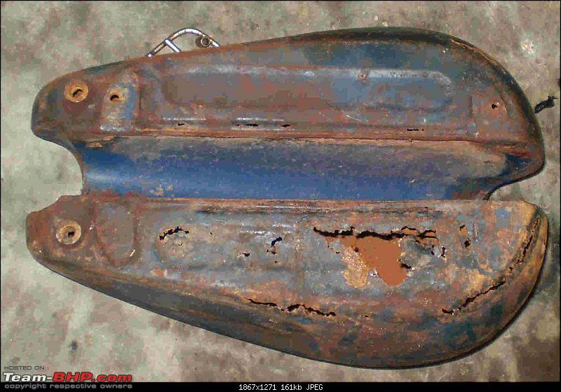 The gas tank has seen better days and is past it’s useable life; probably only suitable as a wall ornament (in the garage or workshop of course). A nice included parcel rack could be cleaned, chromed and reused though.