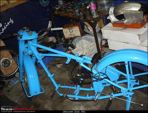 Nevertheless, bolting the chassis together with the ‘new’ tins, triple-tree’d forks and various brakeing, oiling, wiring appendages and fixin’s.