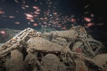 The final image? It’s the open hold of SS Thislegorm stacked with coral encrusted Nortons resting on the floor of the Red Sea after coming a cropper from some German ‘wolf’. These may be a bit beyond repair… As well as being a perfectly good marine habitat. A barn it’ll have to be!
