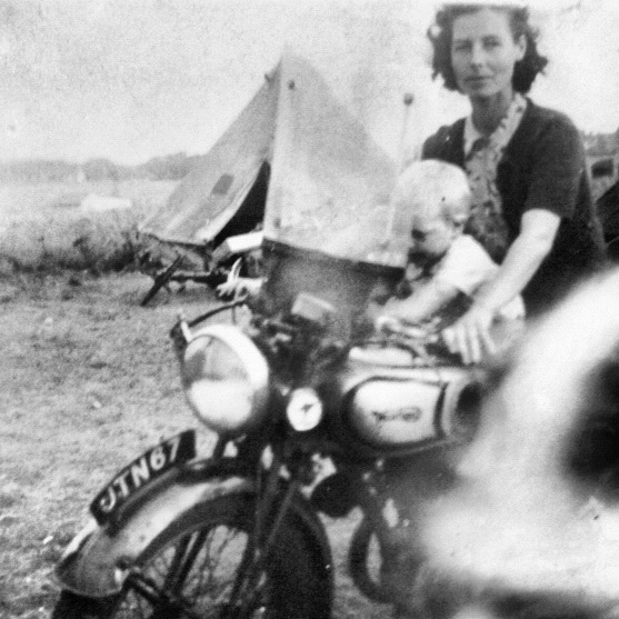 Here’s a lovely family photo from yesteryear. It’s my mother mother, Edie, sitting astride my Granda’s Norton. This was the family transport for many years; that’s three kids. One of which is propped on the silver and black pinstriped tank: my Uncle Dave. Taken during a summer during the early fifties a pyramid tent in the background denotes the seasonal camp down at Cresswell. I’ve ascertained that this is a 16H 500cc single Norton. Girder forks possibly put it in the 30’s or 40’s. this model was the platform for the wartime bike used worldwide by the British armed forces during WWII.