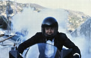 Great Scot! Sir Sean played James Bond in one last outing in the early eighties… Not a Cubby Broccoli Eon Productions Bond; but an adaptation of the Fleming Thunderball novel and subsequent movie of the same name in ’65. Connery is seen zooming around on a square faired Yamaha 650, including jet launch ‘gadget’. A far cry from Fiona Volpe’s machine gunning BSA from the original! As a couple of side notes the screenplay (uncredited) for NSNA was written by Ian laFrenais and Dick Clement the writers for two great Geordie TV sitcoms: “What ever happened to the Likely Lads” & “Auf wiedersehen Pet”. Also a serious gearhead (and outstanding comedian) Rowan Atkinson, also starred in the film (his Geordie barman from Not the Nine O’Clock News is a classic! “Everest. That’s brewed by the Jormans in the Himalayas.”