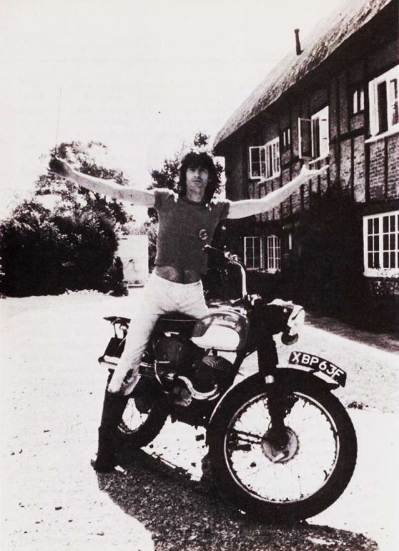 Seeing as we’re on a music rock ‘n’ roll let’s delve into the two-wheeled antics of a pair of the fathers of rock: Mick Jagger and Keith Richards. Well Keith has always been a skinny malinty so the diminutive Triumph Cub seems like the best choice for him.