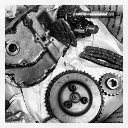 A pleasant surprise this afternoon after my midday swim: the postie had dropped of a box, fairly hefty too. My parts search is slowly coming to fruition; and today a plump find arrived. A complete clutch and gearbox for the project. It is in fairly good condition too, but naught a wipe down with oil, renew cush rubbers, new cork on the plates can’t restore to full service. I’m excited!