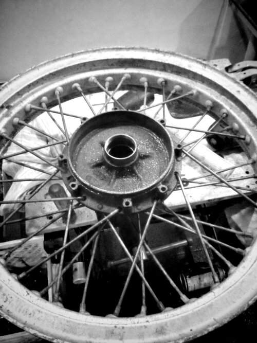 There was also a spacer behind the sprocket which no doubt is used to keep the chain line away from the wide rim and tire. But it’s a good solid wheel ready to clart on wi’.