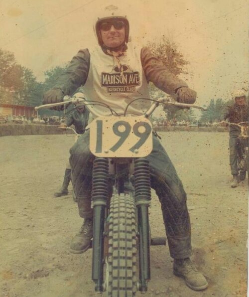 #199 he utilized the wee 200cc single to much success in desert races, scrambles, trials. He was a member of the Manhattan Motorcycle Club… His club emblazoned tabard here at Davos Ski Resort in ’64. His cool demeanor with shades strike a appropriate pose for the track…