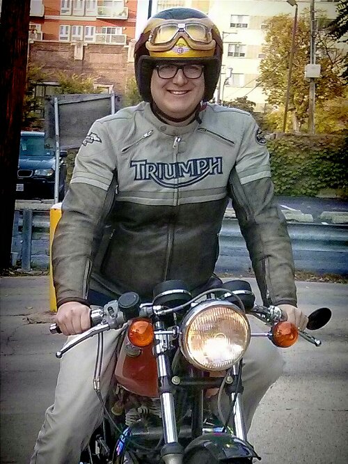 He also knows what a cool moto is: Triumph. Here looking moody on a 60’s bobb’d bike.