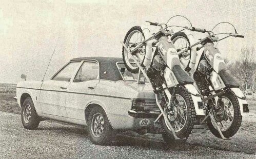 How to haul a pair of dirt bikes seventies style…Mk III Ford Cortina.