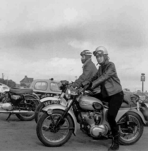 Period photo of young rocker chick on her ‘Baby Bonnie’ the Triumph Tiger Cub. Its nimble character was ideal for the fairer sex and kept up the good looks of rider and ‘cycle both.