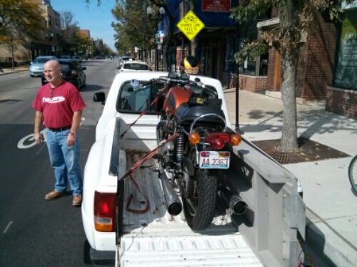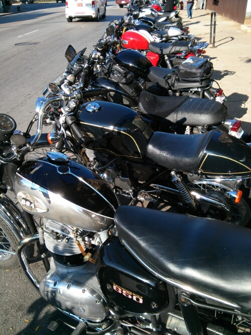 Triumph made up a good proportion of the bikes , both old and new. My Bonneville fought valiantly along the slowish riding, a hot clutch with feathered throttle slipped a few times. However the last stop. I turned my lights on rather than off so the bike was dead as a dodo and wouldn’t start for the short ride home… Deans Ford Ranger came to the rescue to haul my sorry moto back to Evanston.