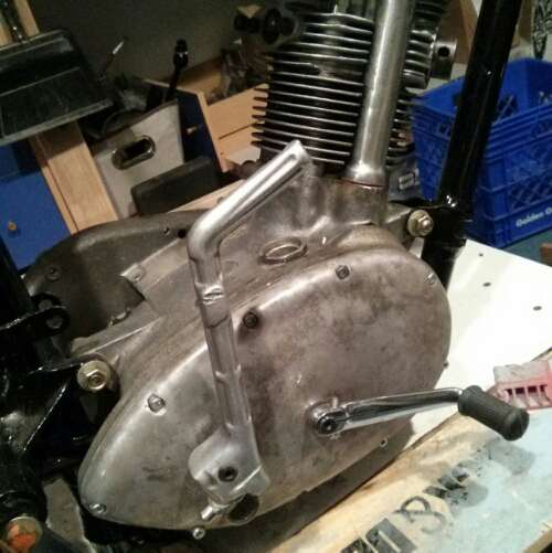 A whiff of drilling and smattering of grinding I managed to fit the splined KTM kick start with the wider swing arm to the cub. Basically drilling a through hole to fit a cotter pin. Broke three bits to get through the hardened steel. And my Dremel died when fine tuning the fitting. But it works well and looks capable whilst folding neatly against the engine.