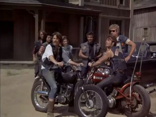 Sixties Canadian TV show with biker gang member toting around on a Triumph Cub…. Must be an initiation thing!