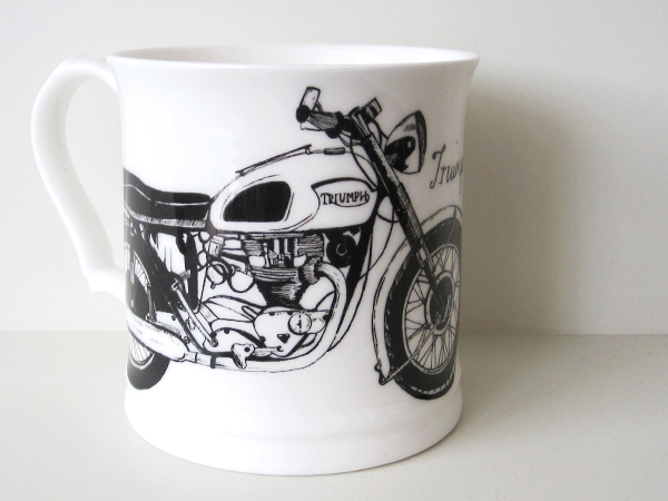 Splendid line drawing with character of someone’s beloved ride. This was a commissioned piece used to adorn a mug created by a ceramist in the UK.