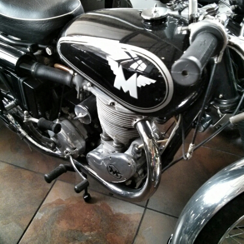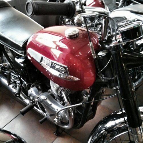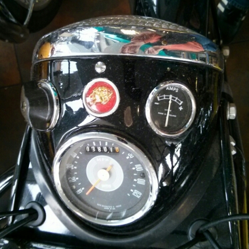 The collection belongs to Al Philips. An alcove behind the entry foyer had the hat trick. Three Vincents… Here’s the superlative Black Lightning.