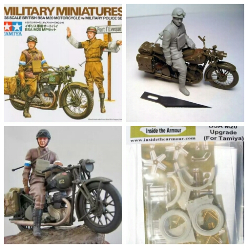 Model Kits. Growing up I couldn’t get enough of them! Aircraft, tanks, cars, ships. Assembly kits or scratch built. I’ll have a little dabble into this world of polystyrene glue and plastic. There’s a 1/35th BSA M20 with rider and arm waving military policeman that I’d like to acquire.