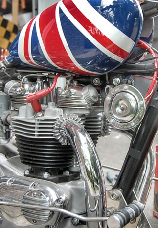 The Union Flag can adorn anything from napkins to boxer shorts. But cover a Triumph petrol tank in one and the the British symbol feels right at home. The George Cross, Scottish Saltire and the Cross of St Patrick layer to create the most recognizable flag in the world.