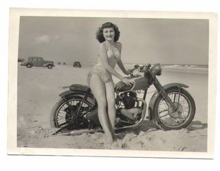 Beach Babe: a box brownie snap of someone’s love. Both two-legged and two-wheeled. Back when you just drove down to the waters edge and had a ride along the damp sand. You can smell the salty air and feel the gritty sand in your toes.