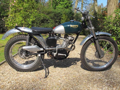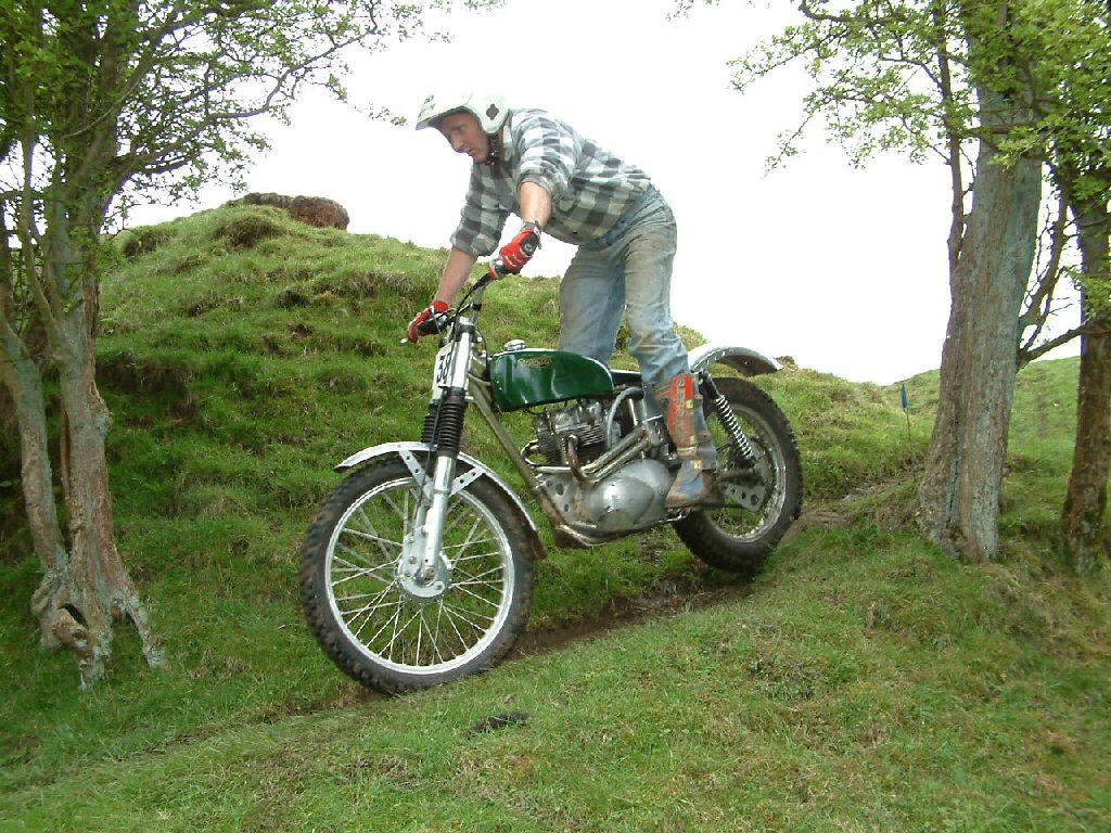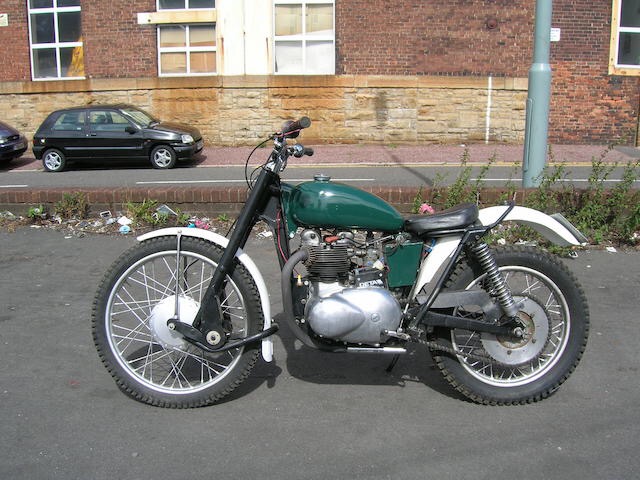 Some go for the white fenders. Here this leading link fork has a Greeves air to the proceedings.