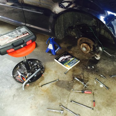 Spent a good part of the morning putting new pads and rotors onto the VW GTI. She’ll stop like and ships anchors been thrown overboard…