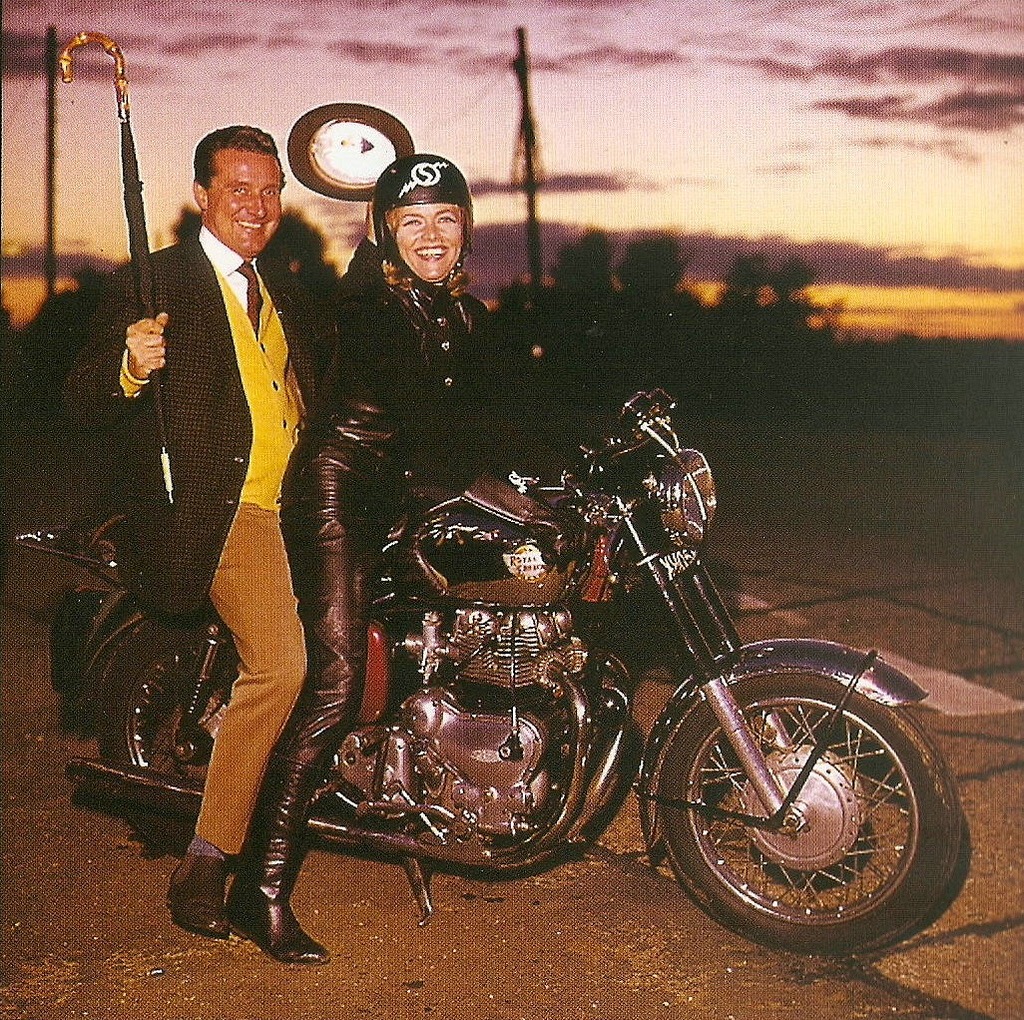 The Avenger boss played by Patrick Macnee always had fine clothes, finer wine and the finest women around him. My favorite was Honor Blackmans portrayal of Cathy Gale. Here she has Steed apillion on a Royal Enfield back in the day. He was the quintessential Englishman with she as the perfect Action a Woman.