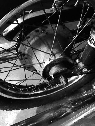 Putting plans into action for the next Bonnie upgrade. The standard steel rims add a lot of unsparing weight to the bike and as was done in ‘the day’ I’m going to get hold of some hubs and lace ’em to alloy rims then shod the new lighter wheel with modern rubber.