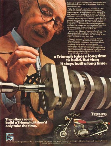 Hmm… Not to sure about this with the shenanigans going on at Meriden in the seventies. I believe they weren’t spending enough time on them; with components manufactured with aged tools, worn factory conditions and a workforce unsupported by the company or government.
