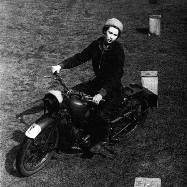 19 year old Princess Elizabeth riding slalom on a military 250cc BSA during the Second World War as part of the ATS (Auxilliary Territorial Service). Her main role was maintaining ambulances and ’tilly trucks.
