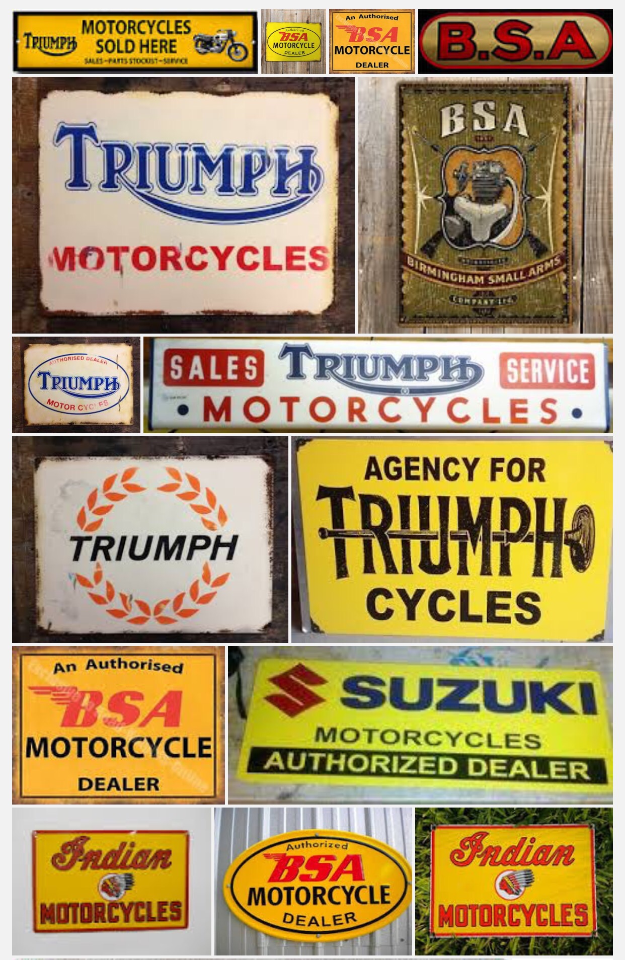 Rust edged enamel signs: from the walls of a dealer to the sliding door of a workshop. Primary bright and long lasting. Plastic signage fades under brutal ultraviolet. I should look for one for my workshop space…